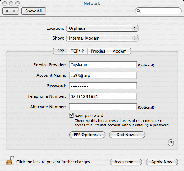 Mac OS X is relatively easy to configure for dialling into Orpheus. These simple instructions will hopefully make the process as painless as possible.